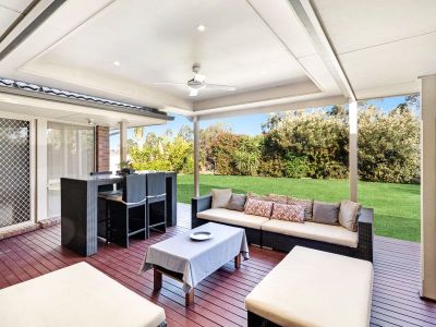 overlooking the yard, enjoy entertaining on the covered timber deck complete with ceiling fans and downlights
