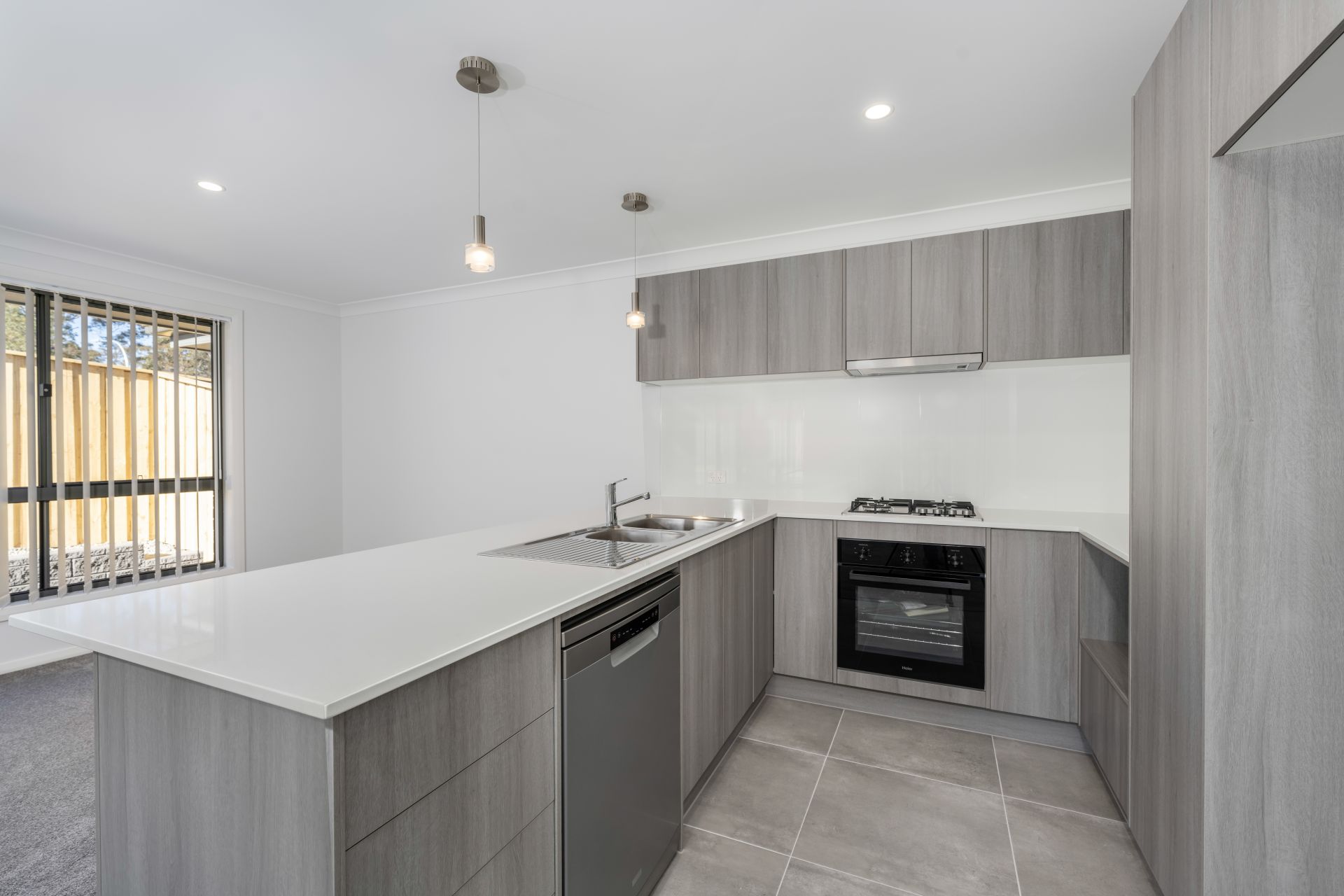 Open plan living surrounds the kitchen where stainless-steel appliances inclusive of a gas cooktop combine with stone benchtops and an abundance of storage the ideal space for family enjoyment.